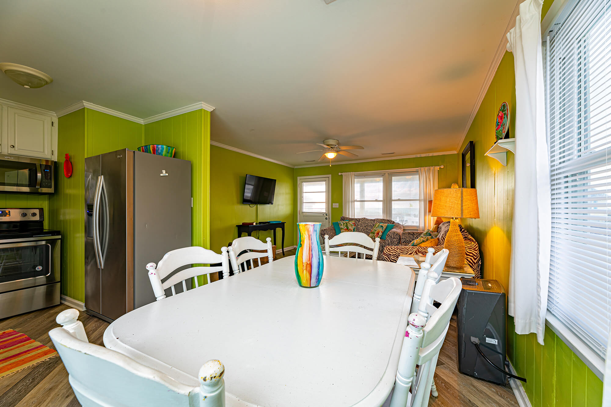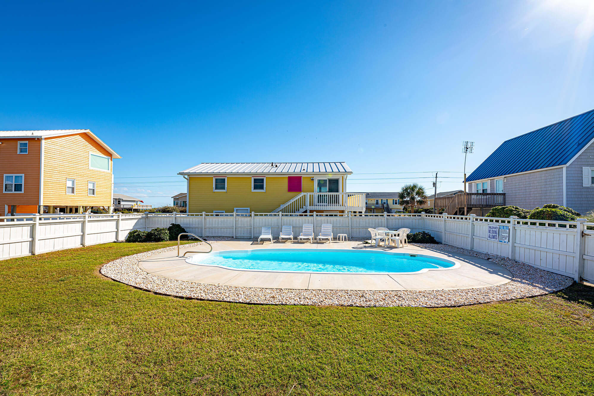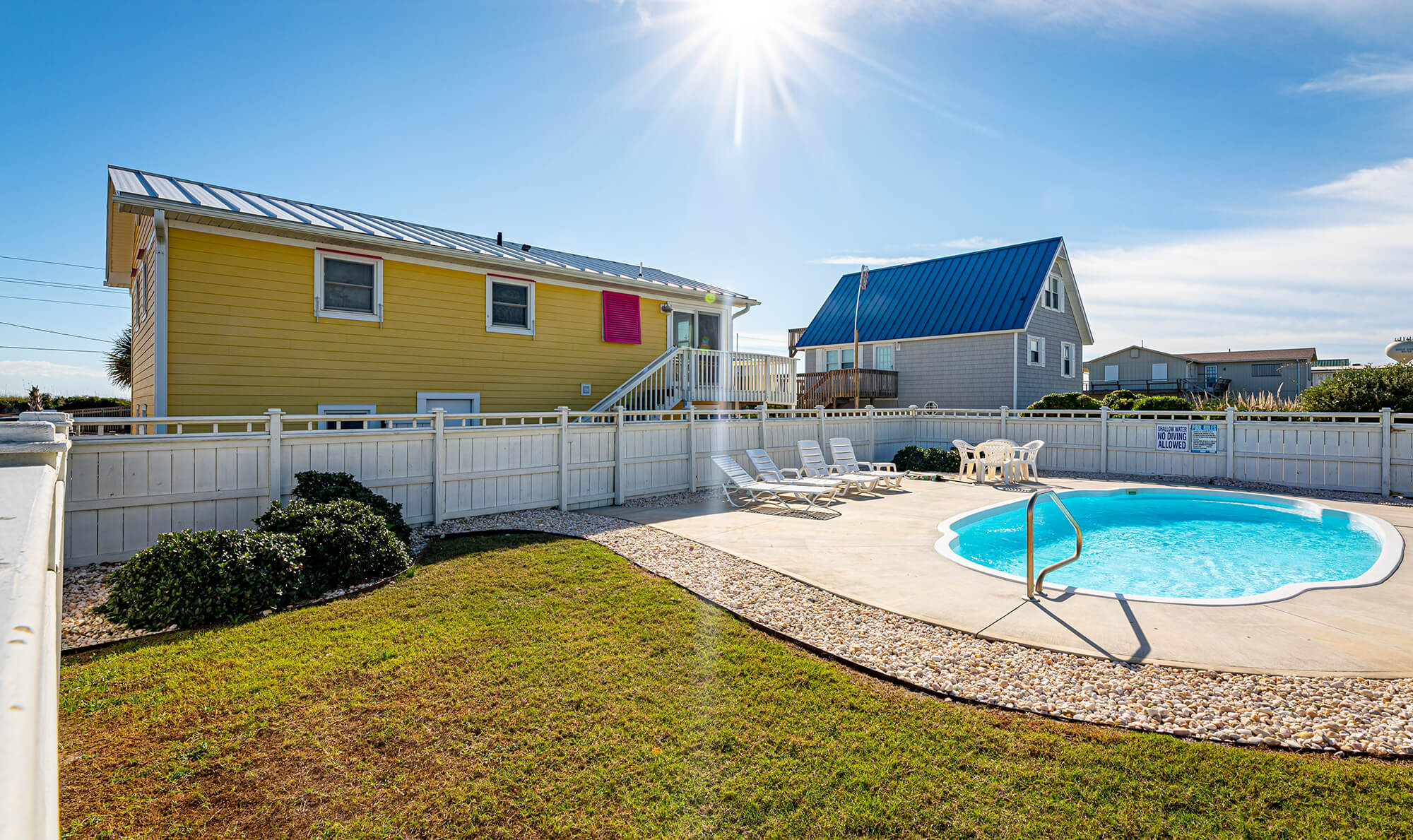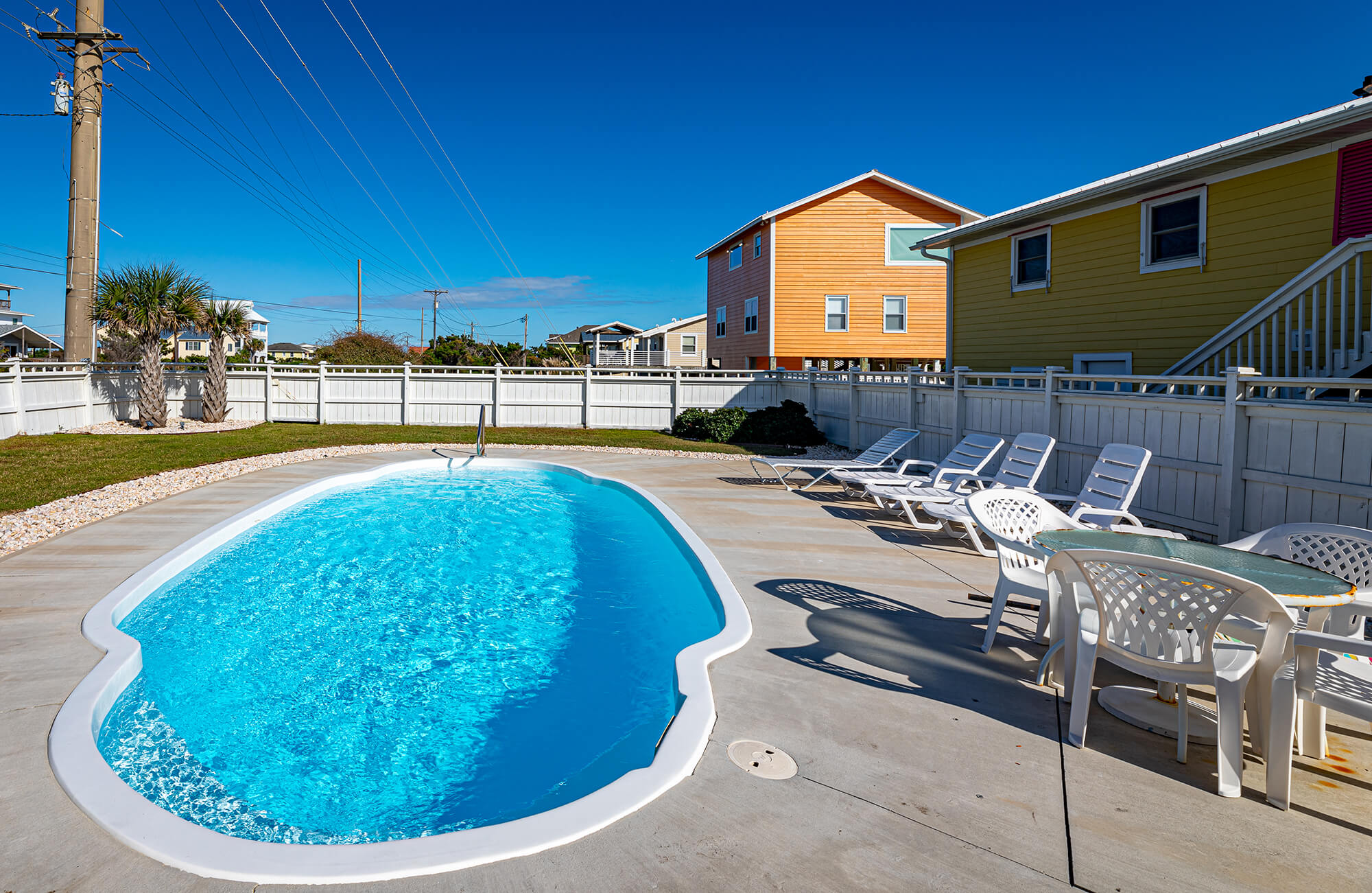 - Amenities: Air-conditioning, Coffee Maker, Corn hole Set, Deck/Patio, Dishwasher, Family/Kid-friendly, Free Parking, Free WiFi, Fully-stocked Kitchen, Heating, Laundry area, Lawn/Garden, Non-smoking, Outdoor Furniture, Pets allowed, Private Swimming Pool, Towels & Linens Provided, TV